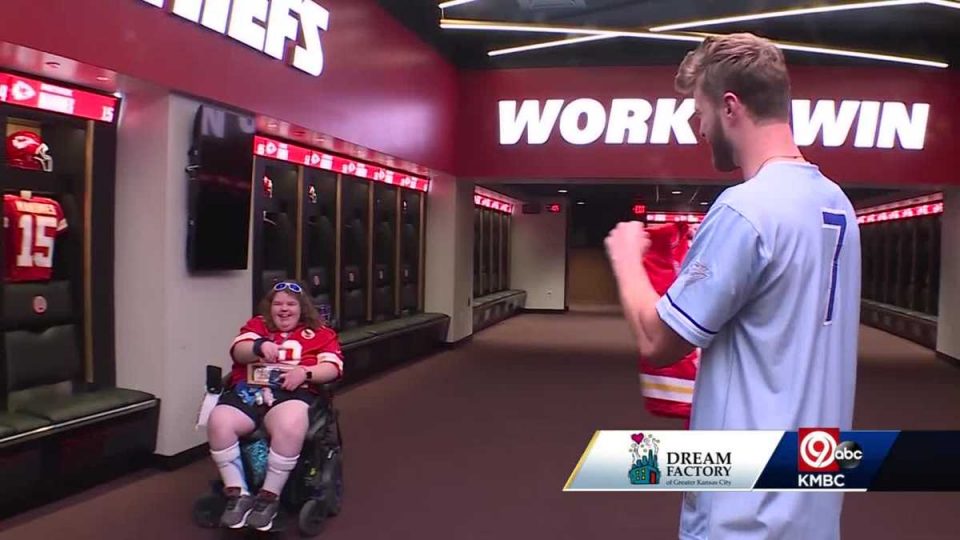 LATEST DREAM WENT DOWN. LEN: AN EXPERIENCE LIKE NO OTHER, AN 18-YEAR-OLD GOT TO SEE HER FIRST — FAVOTERI STADIUM WHERE HER FAVORITE TEAM PLAYS, THE CHIEFS. A BIRDSEYE VIEW OF THE FIELD. SHE PAID THE PATRICK MAHOMES PRIVATE SUITE OF VIS.IT >> I MAY OR MAY NOT HAVE TAKEN A PICTURE. LEN: THE TOUR WASN’T COMPLETE WITHOUT GRACING THE FID ELAT ARROWHEAD. IN A FINAL STOP IN THE LOCKER ROOM, WHERE A SURPRISE AWAITED HER. >> OH, MY GOD! >> WHAT’S GOING ON, SIERRA? HOW ARE YOUOI DNG? >> THAT WAS PRICELESS. I DON’T THINK I HAVE SEE MY DAUGHTER NOT SAY SOMETHING. LEN: S SHEUFFERS FROM HEARTND A SPINAL CORD CONDITION AND IT HAS BEEN TOUGH DURING A PANDEMIC. SIERRA: I HAVINE STOCK AT HOME FOR A LOT OF TIMES. LEN: ON THIS DAY, SHE EXPERIENCED SOMETHING SPECIAL, MEETGIN HER FAVORITE PLAYER THANKS TO E THDREAM FACTORY. >> IT WENT ABOVE WHAT WE EVER EXPECTED.