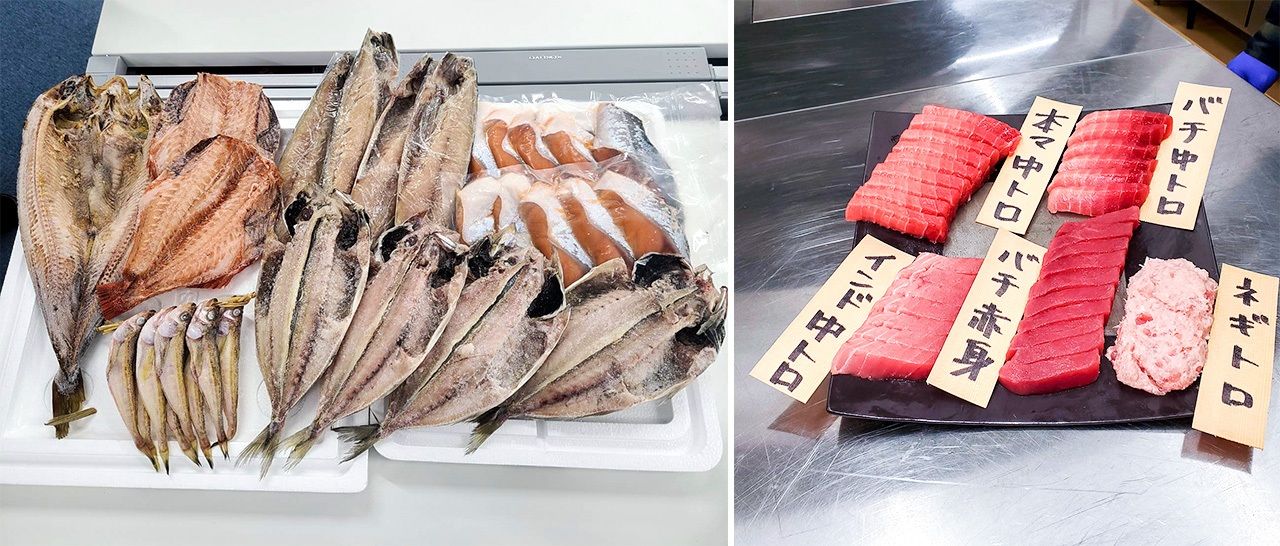 Boxes of dried fish (left) and quick-frozen fresh tuna cuts. Photos courtesy Kaisei Bussan.