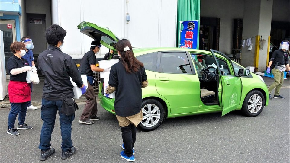 Drive-through sales are taking hold in Tokyo as a new way to hinder the spread of the coronavirus. A drive-through shop selling discounted cuts of tuna, dried fish, and other seafood opened in Toyomi in Chūō, Tokyo, on May 9. This new approach is providing a new marketing channel for fishers whose usual clientele have closed during the pandemic.
