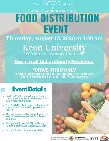 The food distributions are being sponsored and coordinated by the County of Union and the Community FoodBank of New Jersey (CFBNJ).