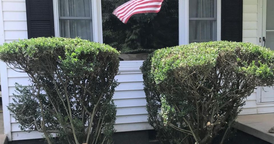 The boxwood bushes in front of our picture window had sprouted so much new growth, we had trouble seeing the flower bed outside. Plus, they’d been damaged in January’s snowstorms and I knew there were some dead branches that needed to be removed.