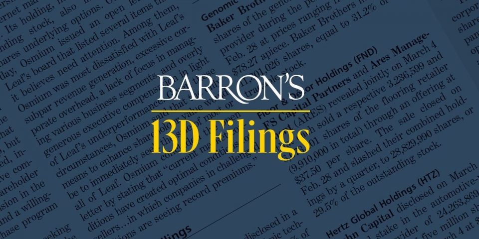 These disclosures are from 13Ds filed with the Securities and Exchange Commission. 13Ds are filed within 10 days of an entity’s attaining more than 5% in any class of a company’s securities. Subsequent changes in holdings or intentions must be reported in amended filings. This material is from July 2 through July 8, 2020. Source: InsiderScore.com