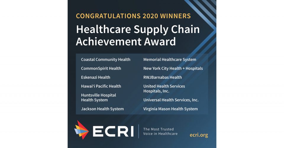 - Congratulations to the winners of @ECRI_Org’s Healthcare Supply Chain Achievement Award 2020 #SCAA20 #scweek