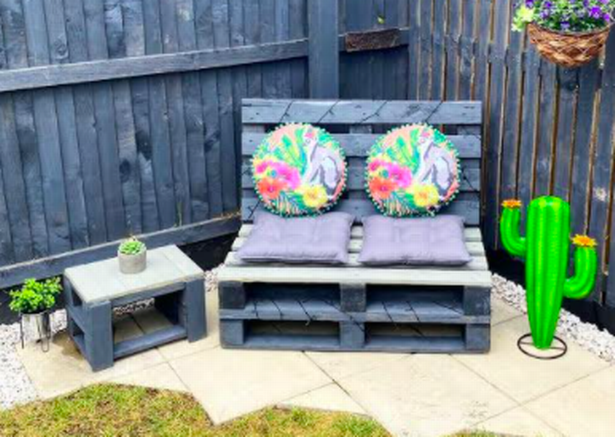 Hayley explains: “My partner and I had been doing up our garden and we had some pallets that had been lying about gathering dust, so he just made a couple of benches with them.