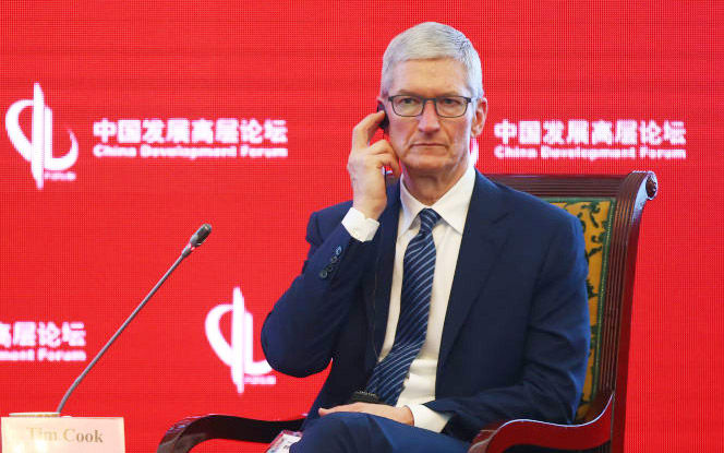 Apple CEO Tim Cook attends the annual session of China Development Forum (CDF) 2018 at the Diaoyutai State Guesthouse in Beijing, China March 26, 2018.
