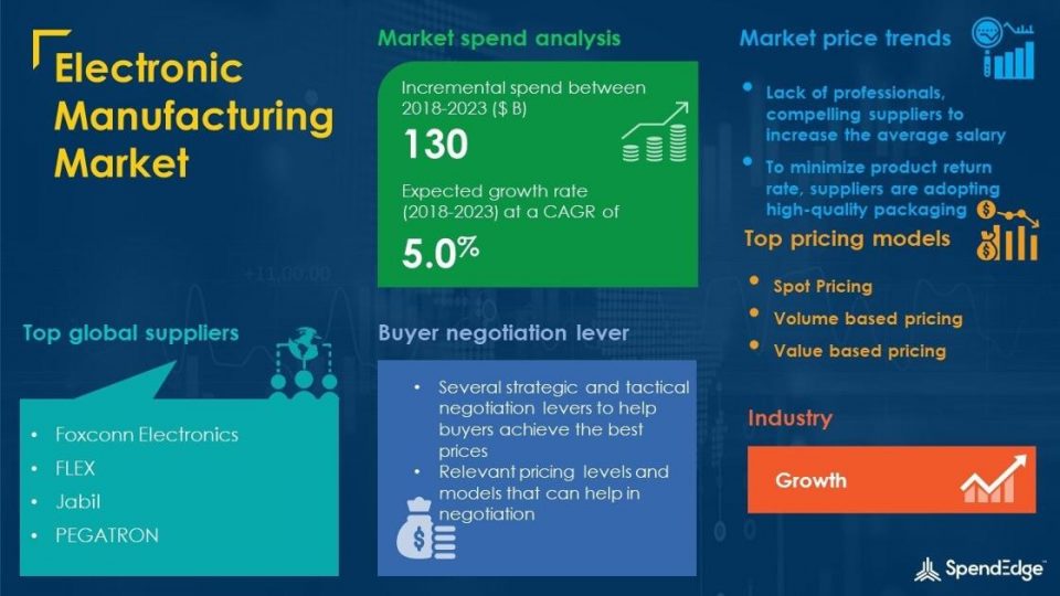 The Electronic Manufacturing Services market will register an incremental spend of about $130 billion, growing at a CAGR of 5.00% during the five-year forecast period. A targeted strategic approach to Electronic Manufacturing Services sourcing can unlock several opportunities for buyers. This report also offers market impact and new opportunities created due to the COVID-19 pandemic . Request free sample pages