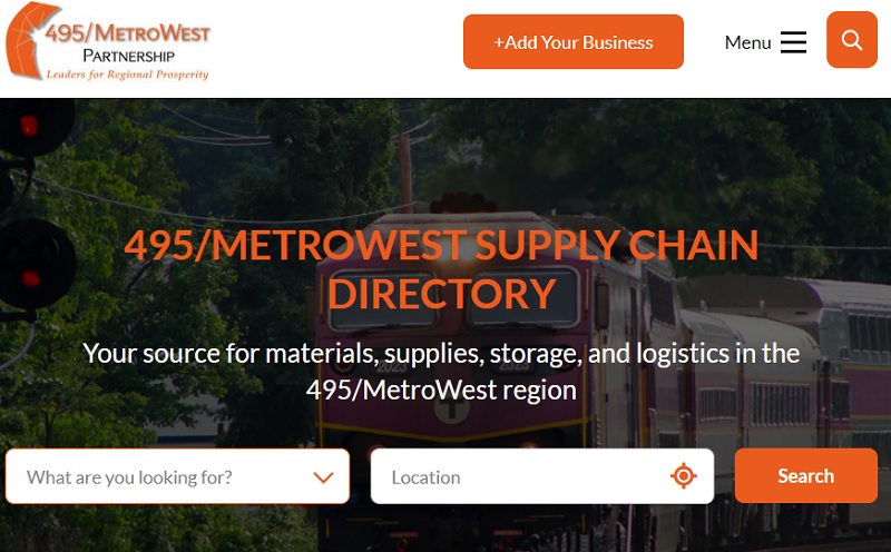In response to nationwide supply chain issues created by the COVID-19 pandemic, the 495/MetroWest Partnership created an online Supply Chain Directory to support and promote businesses in the region engaged in manufacturing, supplying raw materials, warehousing, transportation, and logistics. The 495/MetroWest Supply Chain Directory is an online informational resource focused on enhancing information about these businesses, aimed at supporting regional supply chain resiliency, and encouraging local sourcing.