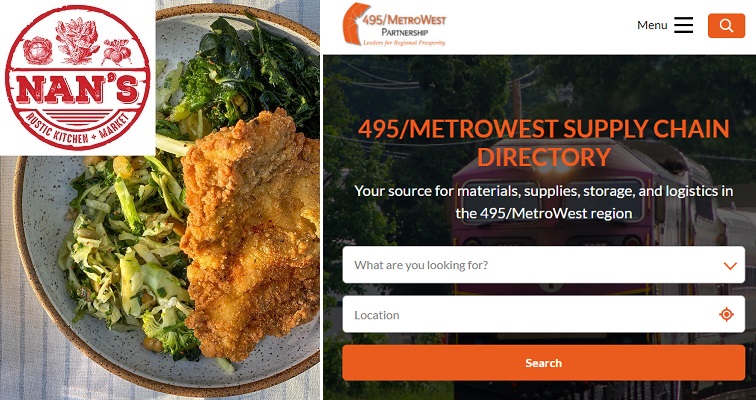 Above: News highlights include a new eatery coming to town and a directory designed to ease local supply chain woes while helping to market area business-to-business vendors. (Images L-R from Facebook and 495/MetroWest Supply Chain Directory)