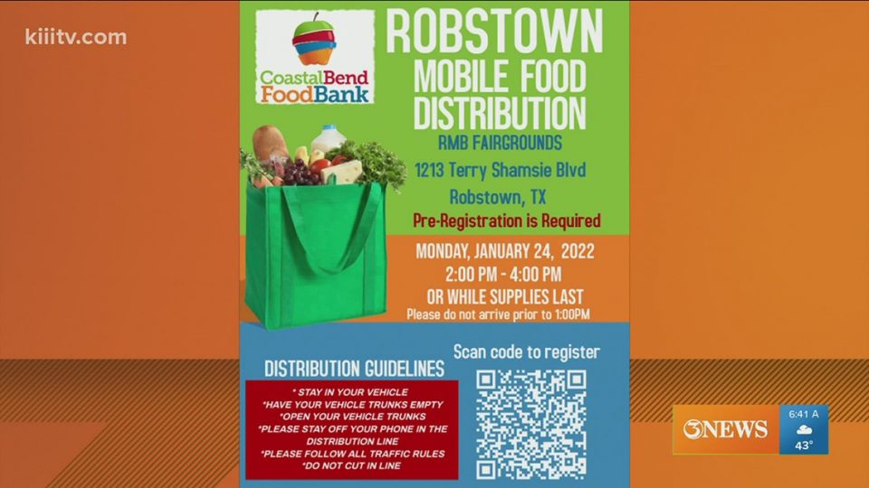 CORPUS CHRISTI, Texas — With severe weather threatening Friday, the Coastal Bend food bank has rescheduled their mobile food distribution event to Monday afternoon.
