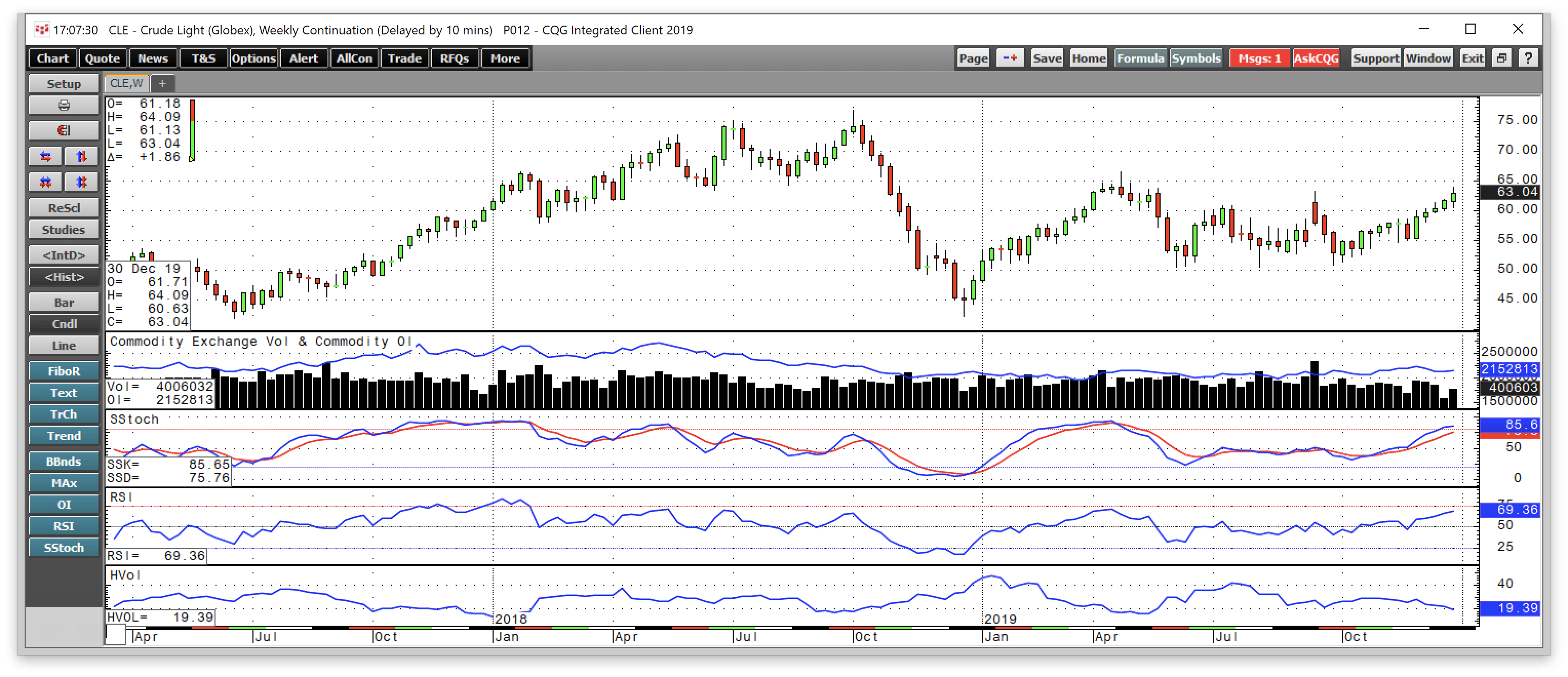 Crude oil traded within the 2019 range in Q4 as the price traded from a low at $50.99 to a high at $62.34 on the nearby NYMEX futures contract.