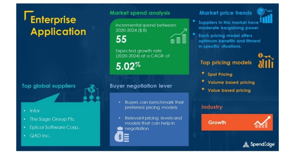 LONDON–(BUSINESS WIRE)–The Enterprise Application market will register an incremental spend of about $55 billion, growing at a CAGR of 5.02% during the five-year forecast period. A targeted strategic approach to Enterprise Application sourcing can unlock several opportunities for buyers. This report also offers market impact and new opportunities created due to the COVID-19 pandemic. Request free sample pages