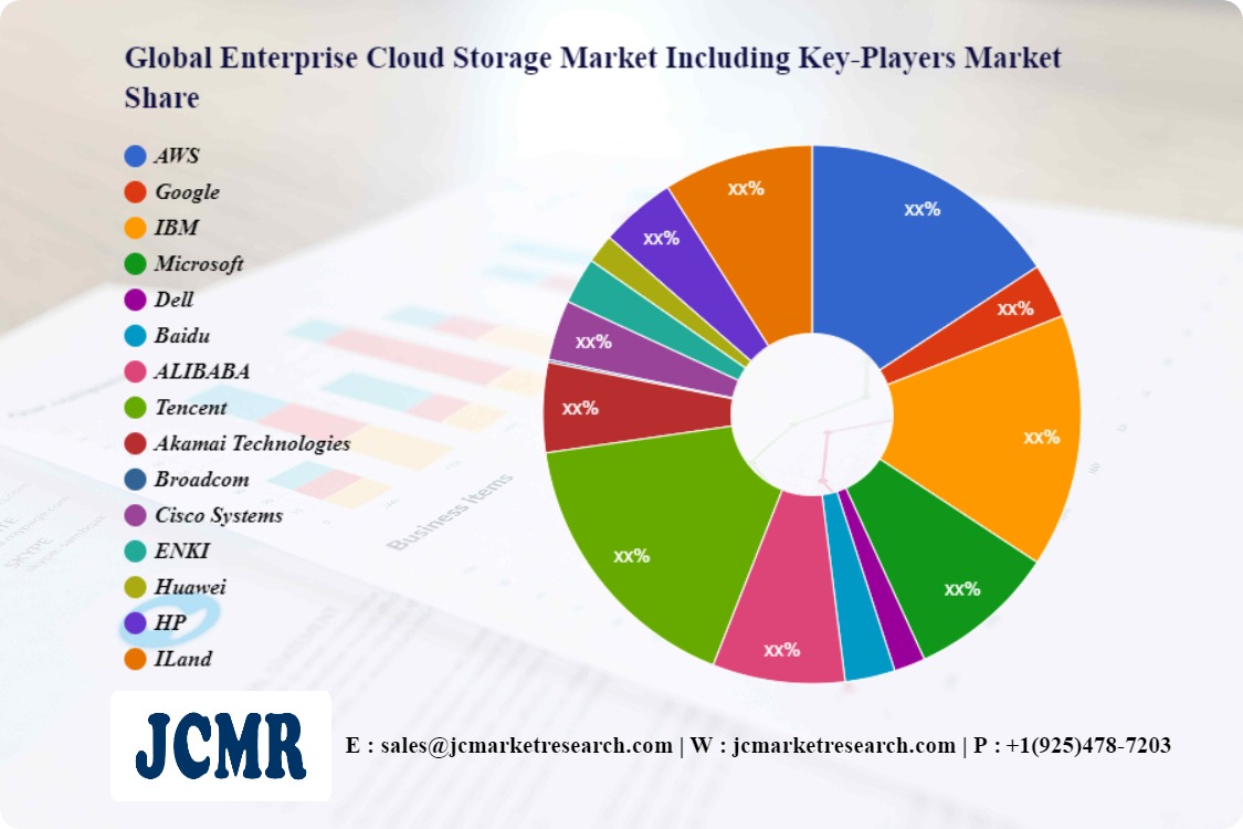 JCMR recently broadcasted a new study in its database that highlights the in-depth market analysis with future prospects of Enterprise Cloud Storage market. The study covers significant data which makes the research document a handy resource for managers, industry executives and other key people get ready-to-access and self analyzed study along with graphs and tables to help understand market trends, drivers and market challenges. Some of the key players mentioned in this research are AWS, Google, IBM, Microsoft, Dell, Baidu, ALIBABA, Tencent, Akamai Technologies, Broadcom, Cisco Systems, ENKI, Huawei, HP, ILand, Joyent, Netsuite, Oracle, SAP