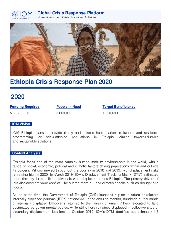 IOM Ethiopia plans to provide timely and tailored humanitarian assistance and resilience programming for crisis-affected populations in Ethiopia, aiming towards durable and sustainable solutions.