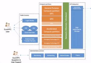 EuroHPC expects the system to be capable of “at least” 205 sustained Linpack petaflops, relatively unchanged from prior expectations of at least 200 petaflops, driven by a heterogeneous machine with both accelerator-based and CPU-based partitions. The system will include a minimum of 204 petabytes of net high-performance storage capacity with 1.6TB/s read and 1.2TB/s write speeds.