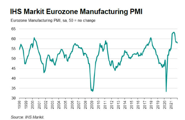 “It has been an incredibly challenging period for eurozone manufacturers this second half of 2021, but the latest survey data hasn’t spoiled the festive cheer too much – we’re seeing some tentative, but very welcome signs that the supply chain crisis which has plagued production lines all across Europe is beginning to recede. The Suppliers’ Delivery Times Index increased for a second month in a row to its highest since February, signalling a weaker deterioration in vendor performance.