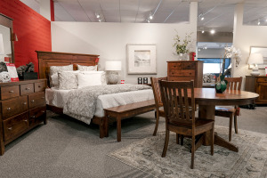 Amish-crafted furniture fills the Simply Amish retail store at 5612 Castleton Corner Lane. But orders from Amish furniture makers can be delayed by international supply snarls involving drawer slides and other hardware that come from overseas. (IBJ photo/Eric Learned)