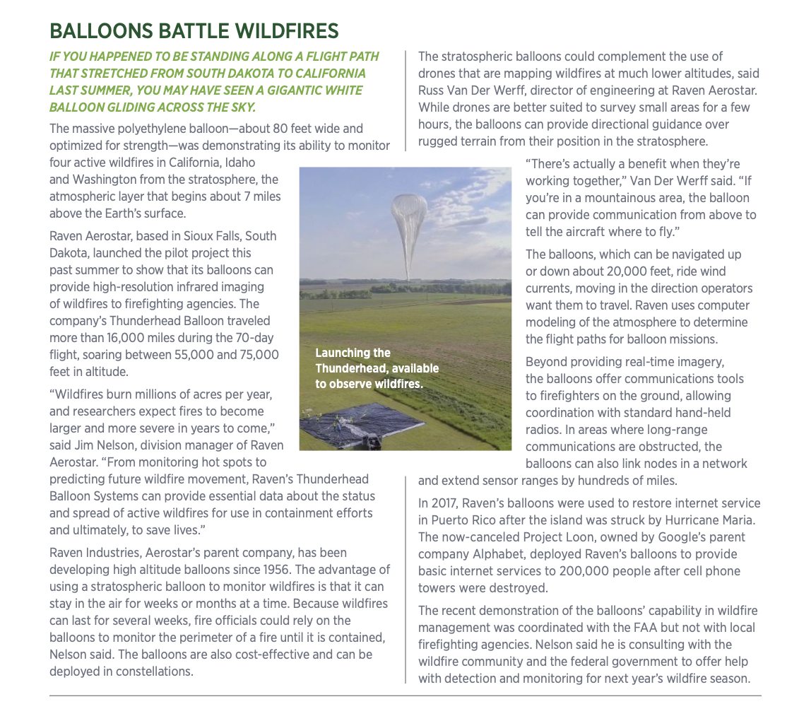 During this past fire season, Drone Amplified, a Lincoln, Nebraska-based company, dropped “Dragon Eggs”—plastic spheres of flammable material that ignite when punctured—on wildfires in California, Colorado and Oregon. The company’s remotely controlled IGNIS system is fighting fire with fire to remove overgrown brush and trees, which can fuel megafires.