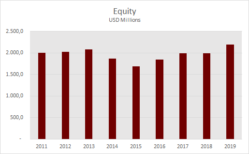 Below is the picture of the equity balance for the last nine years, the answer is clear; the business ran on $2 Bln in equity in 2011 and it runs on $2.2 Bln today, no outside funding has been required.