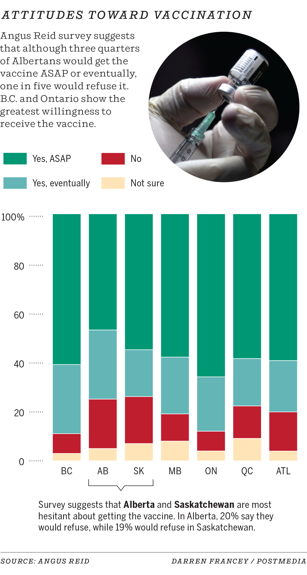 If Alberta could do an end-run around Health Canada, it would end up boosting the refusal among Albertans to take the vaccine, a number an Angus Reid poll from a month ago was the highest in Canada at 27 per cent, said Dr. Juliet Guichon, a University of Calgary medical bioethicist.