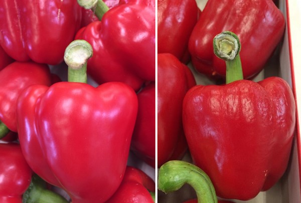 Test results of bell peppers using the PerfoTec & Oerlemans packaging technique (left) and the traditional way of packaging (right), after 25 days at a temperature of 5°C.