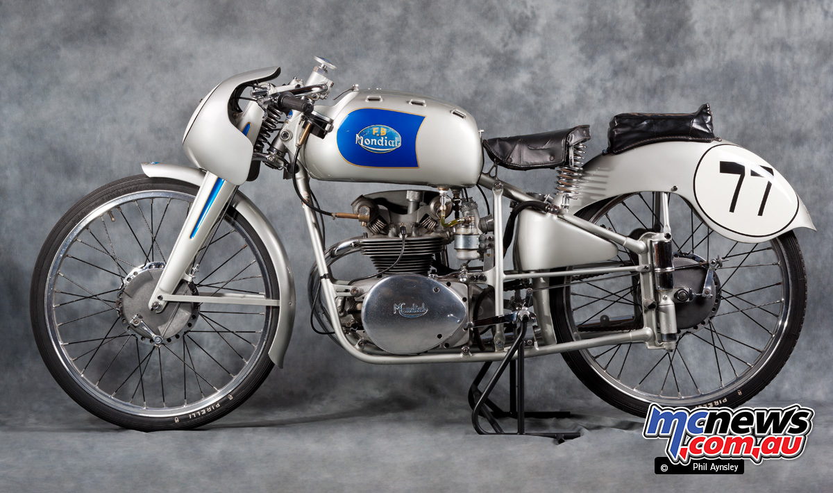 The new bike first raced in September 1948 but had to retire with a split fuel tank (taken from a Moto Guzzi). However the next month the bike, ridden by Giovanni Cavanna in extremely bad weather, set 125 cc world records in the standing start kilometre and mile. On October 24th F.B. Mondial won their first race with Nello Pagani victorious at the Monza GP.