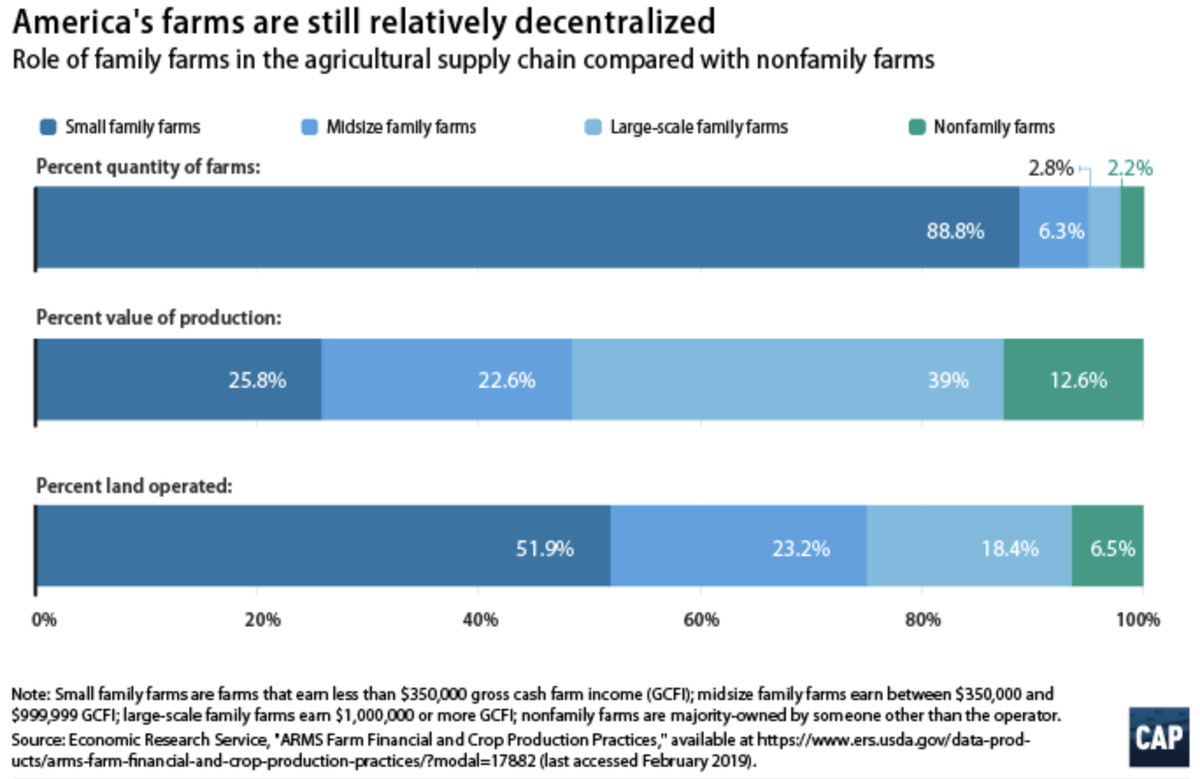 But the food is still grown, and the animals still raised, on family farms. These farms are, in theory, independent, but in practice, they bear the risks of independence without the expected freedoms. The megaproducers they buy from and sell to have all the leverage; farmers are left with little choice save to accept the onerous, binding contracts they’re offered. As the Center for American Progress puts it, “growing corporate power has left relatively small farms and ranches vulnerable to exploitation at the hands of the oligopolies with which they do business.”