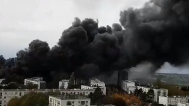A fire at an abandoned factory in northern France on October 24 sent dark smoke billowing over the city of Le Havre.