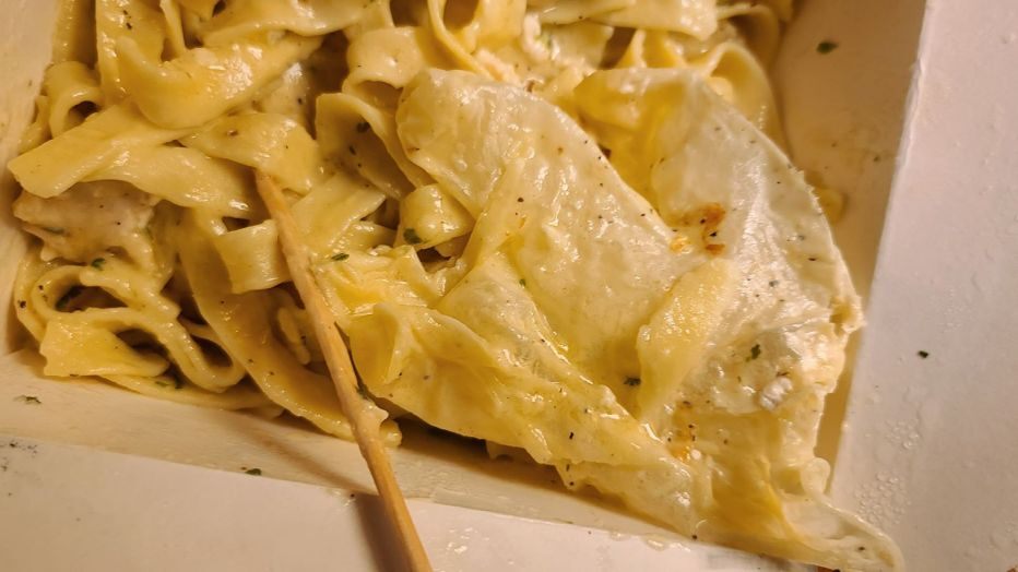 Customer Aurie Graham said her family’s food was delivered to them in a sealed package from Cheesecake Factory in Santa Monica, and when they opened up the containers and started eating, they found a latex glove in their chicken alfredo.