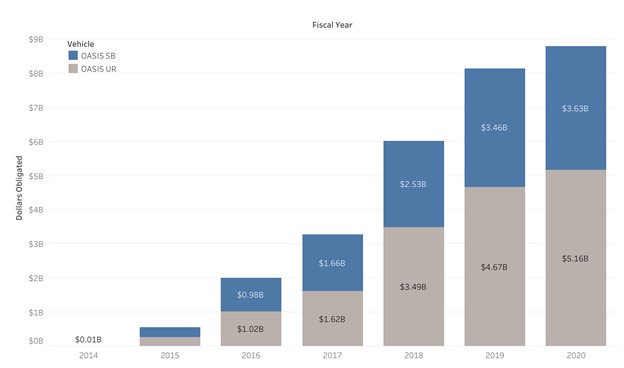 Impressively, over its six-year life, the OASIS program has provided customer agencies with over $28 billion in services support for agency mission requirements. Since 2017, OASIS mission support has increased by more than 167%, to over $8.7 billion in 2020.