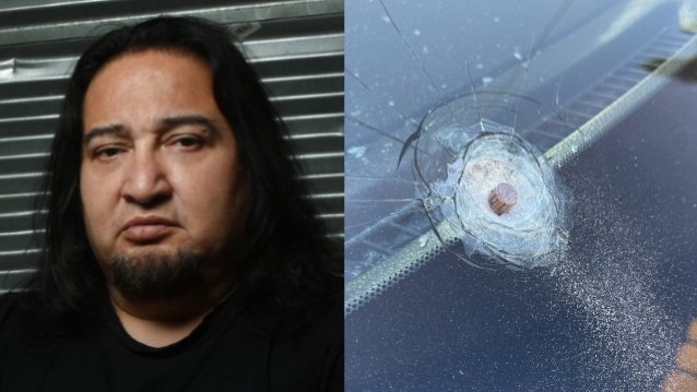 FEAR FACTORY guitarist Dino Cazares says that his vehicle was struck by a bullet earlier today.