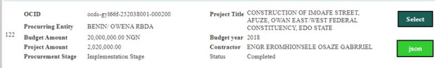 According to data mined from the Public Procurement Portal, the contract, with project title “Construction of Imoafe Street, Afuze, Owan East/West Federal Constituency, Edo State,” was awarded in 2018.