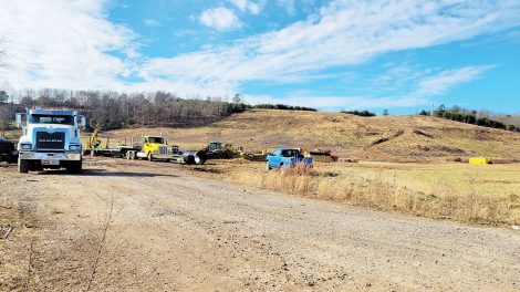 Trucks and heavy equipment are seen at property off Bosley Industrial Park Drive in south Parkersburg Thursday. Construction is expected to start Monday on a 250,000-square-foot distribution center to be leased by FedEx Ground. (Photo by Evan Bevins)