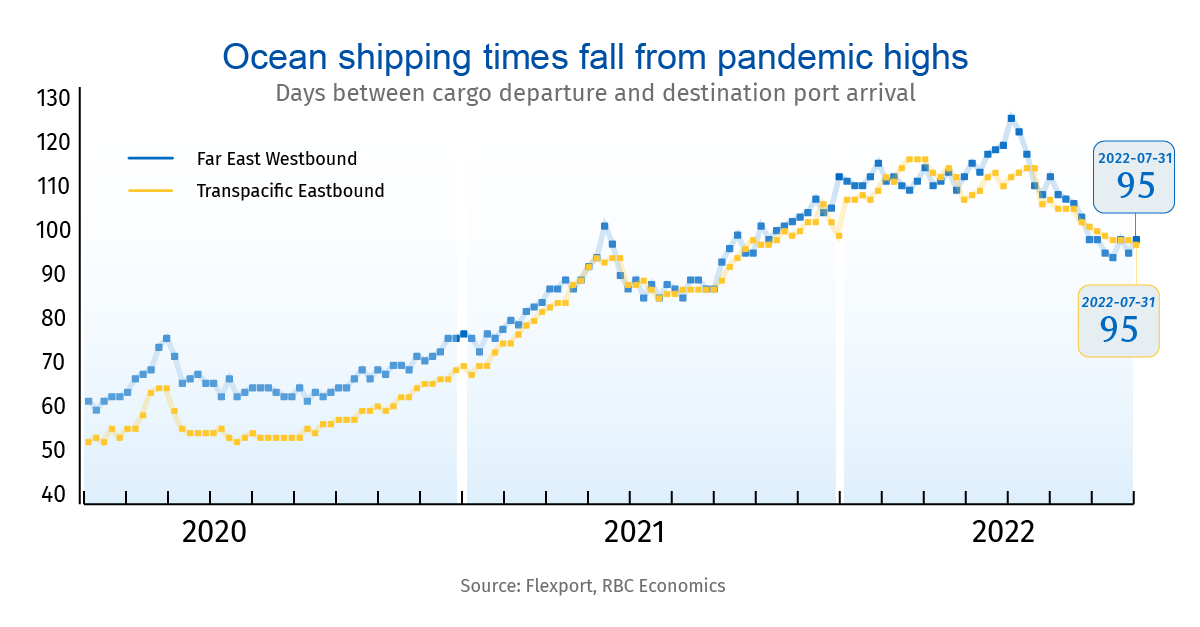 It’s been a story of extremes for global supply chains—and for inflation. Unprecedented supply line disruptions that drove the initial surge in prices during the pandemic are finally easing. And ocean shipping times (while still longer than normal) are a lot closer to what they were in early 2021 for the key routes of Asia to North America and Asia to Europe.