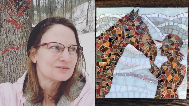 Our spotlight this week is the amazing Karen Strapp, owner of Strapp Studio. Karen is a mosaic artist based in the Finger Lakes. She was kind enough to reach out to us to help share her story and this is what she had to say.