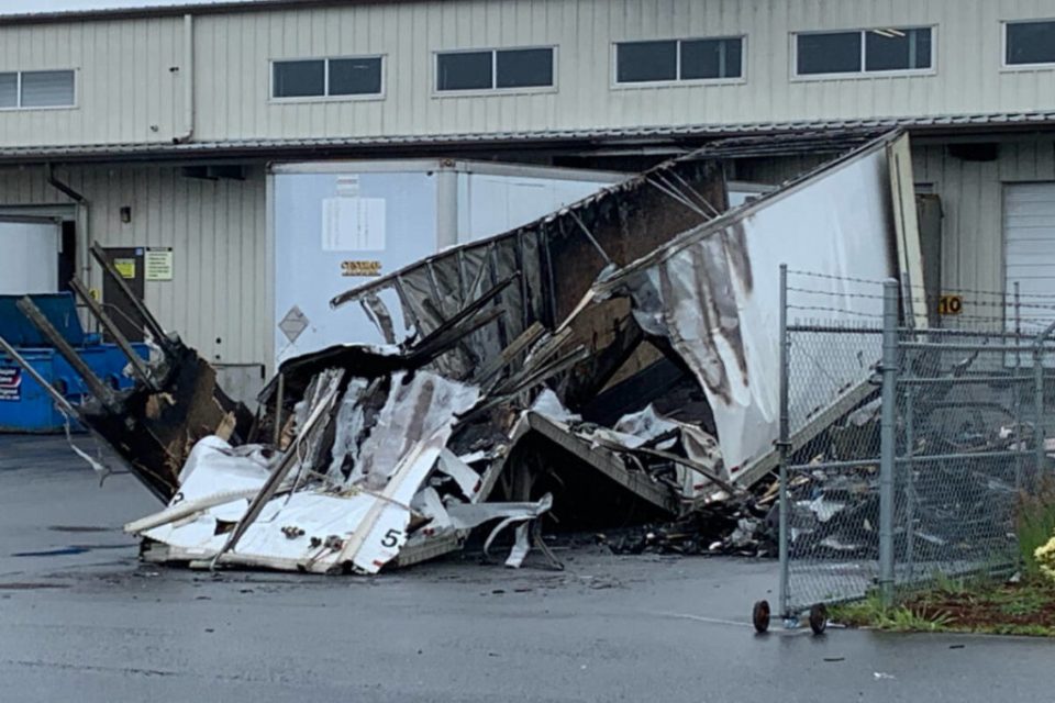 Fire destroys trailer at North Saanich shipping and receiving business; under investigation