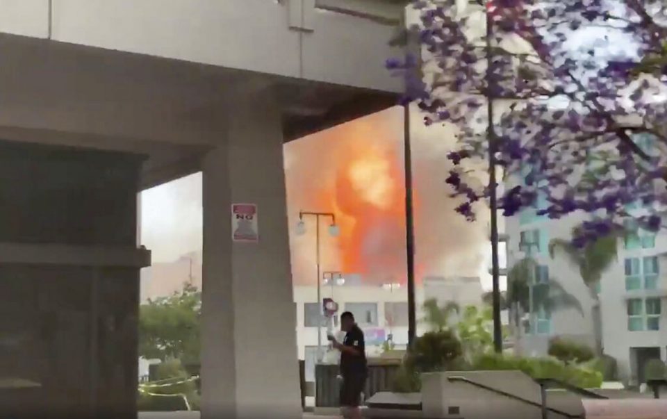 The condition of the injured was not immediately known. News helicopters showed dozens of fire trucks at the scene. As firefighters aimed hoses at the long-slung building in the city’s Toy District where the explosion occurred, others could be seen standing next to gurneys that had been readied for the injured.