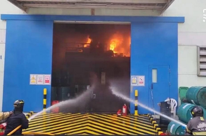 The fire started at around 2.30pm at the Karawa (Thailand) Co plant inside the Amata City industrial estate in tambon Hua Lo, said Pol Capt Suchaiyot Chuaykaew, deputy investigation chief at the Don Hua Lo police station.