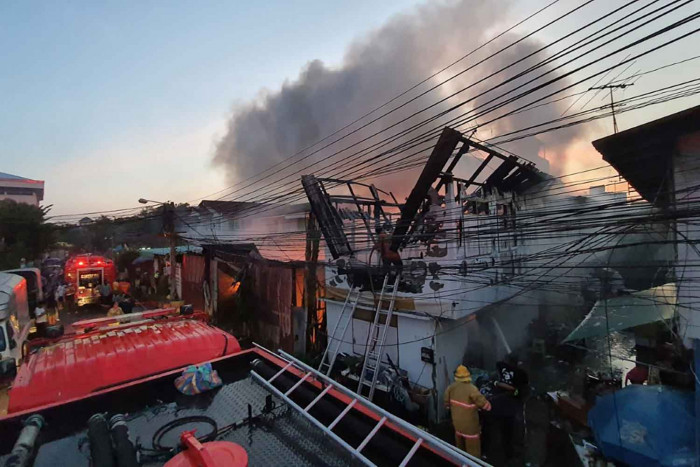 Ten fire engines from Muang Pak Nam Municipality and nearby local administrations were dispatched to the scene.