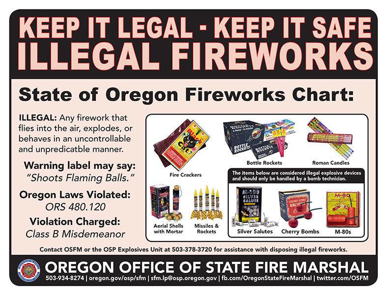 The Office of State Fire Marshal, Oregon fire service, natural resource agencies, Oregon licensed fireworks wholesalers, and health and safety experts want to encourage Oregonians to “keep it legal and keep it safe” when using legal fireworks, according to a news release.