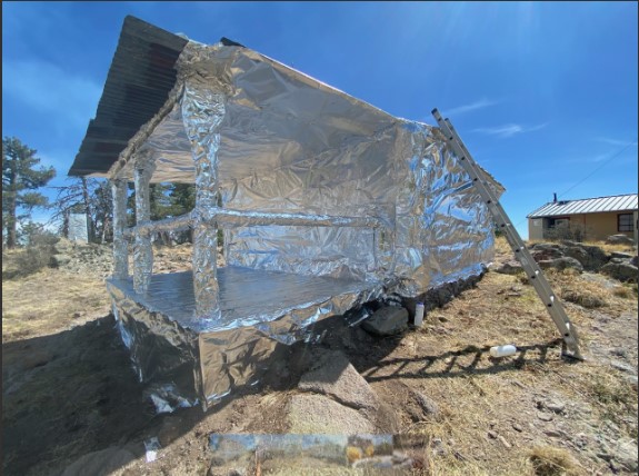 “It’s not the aluminum foil you buy in the grocery store,” says Evan Burks, public information officer for the Southwest Area Incident Management Team 3, “It’s a special material designed for protecting structures from radiant heat.”