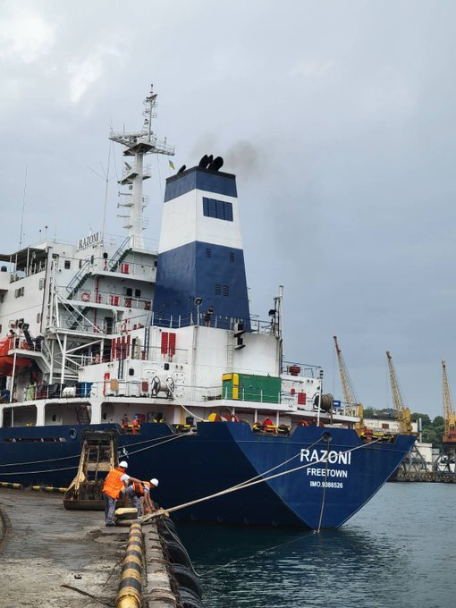 The Sierra Leone-flagged ship Razoni set off from the Odesa Port for Lebanon with its cargo of over 26,000 tonnes of corn.