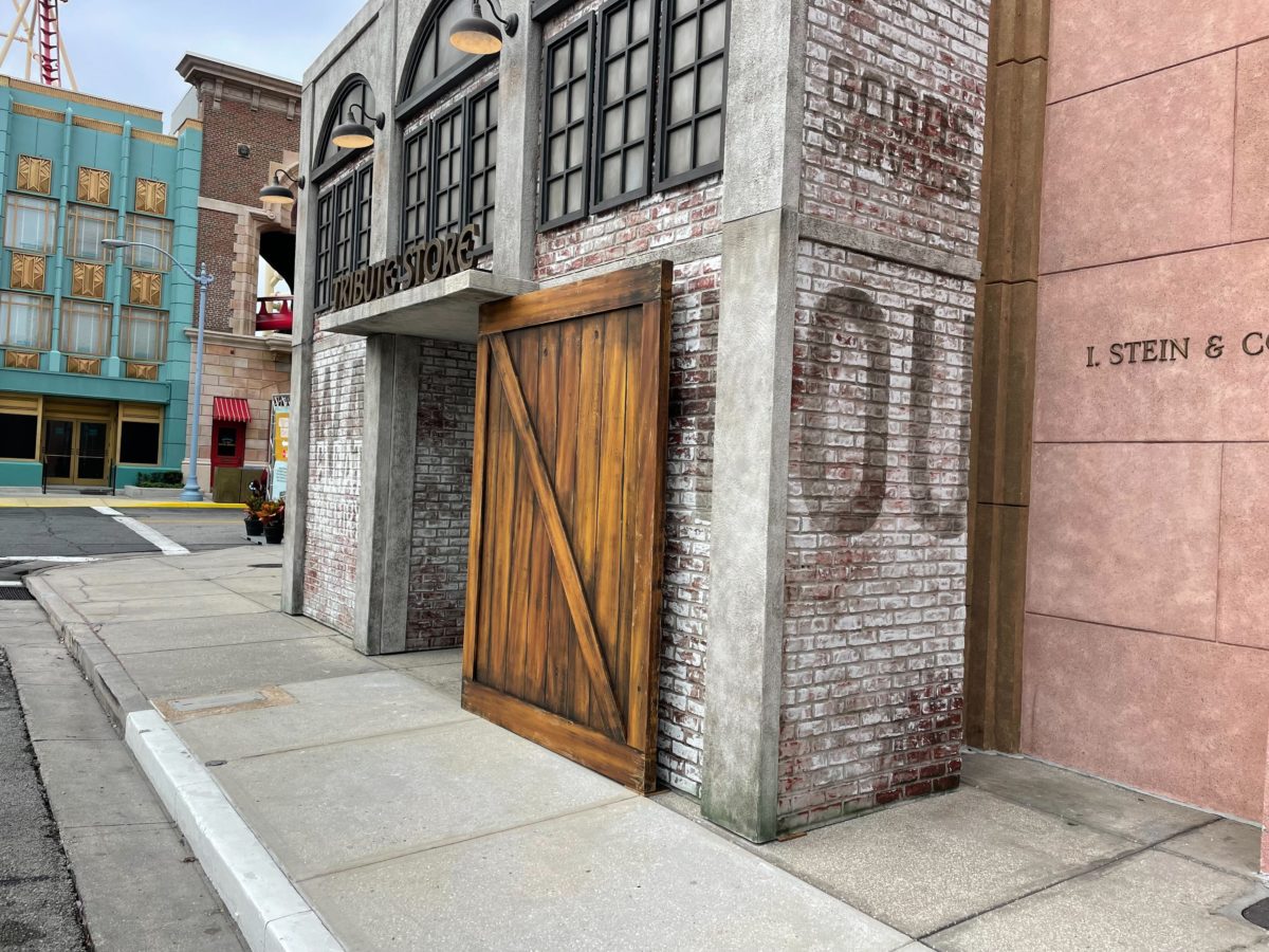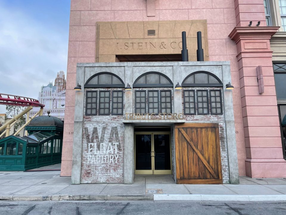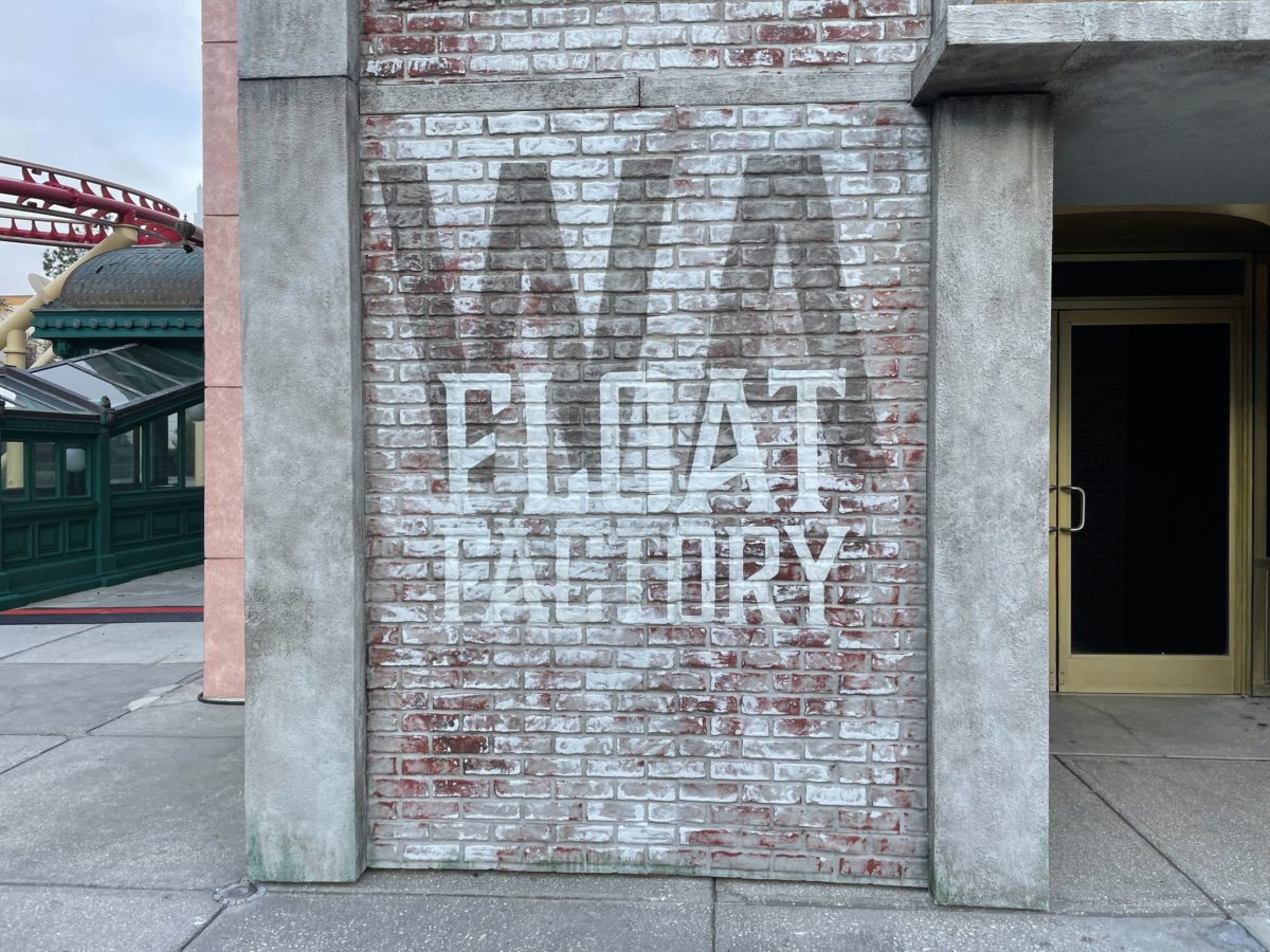 It’s almost time for the biggest party of the year at Universal Studios Florida and construction for the Mardi Gras Tribute Store is officially underway. The new Float Factory façade appeared this morning.