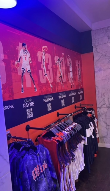 Inside, University of Illinois fans could get a Kofi Cockburn jersey or scan the QR code that led to his webpage with other items.