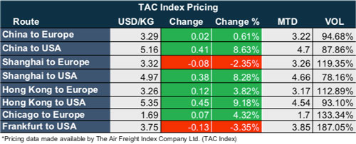 Near-term volatility has created an action point for businesses wishing to hedge current spot market purchasing. Meanwhile, rising fuel prices (jet kerosene average prices are up 10.8% since last month) will potentially squeeze the margin’s of passenger freighter and full freighter operators alike, until these costs are either hedged or passed on to the customer.