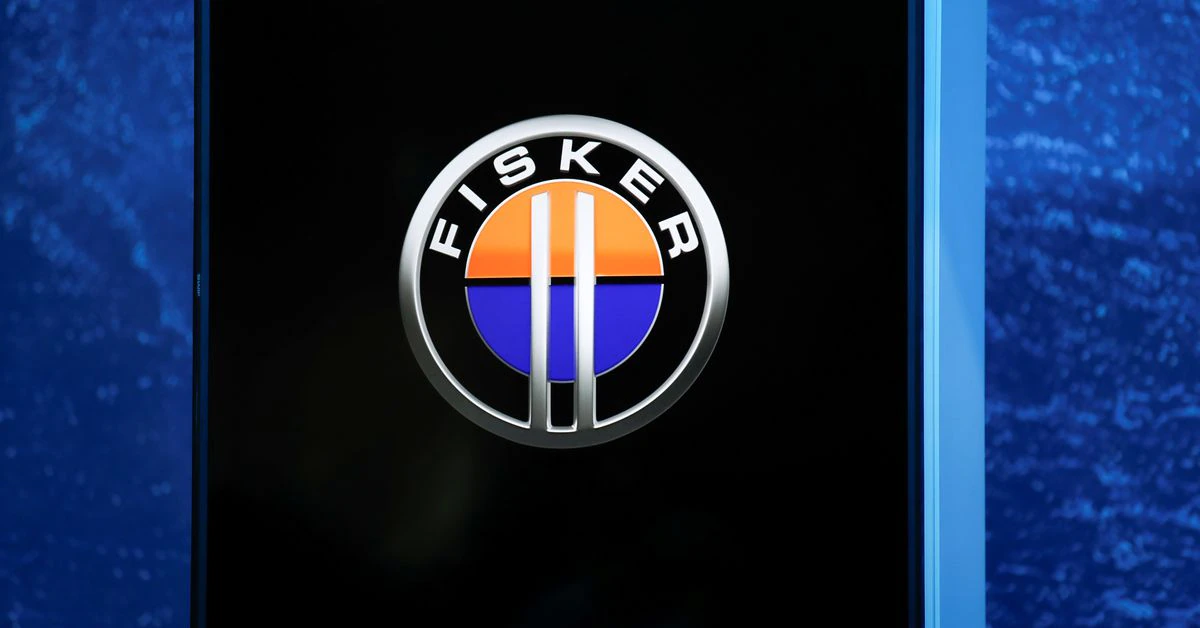 A view of a Fisker logo during the 2021 LA Auto Show in Los Angeles, California, U.S. November, 17, 2021. REUTERS/Mike Blake/File Photo