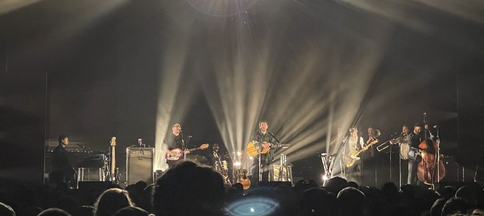 The 36-year-old Pecknold, joined by frequent collaborators Skyler Skjelset, Casey Wescott, Christian Wargo and Morgan Henderson, as well as drummer Christopher Icasiano and (as Pecknold described them) “three-fourths of the Westerlies” — Riley Mulherkar, Chloe Rowlands and Willem de Koch — providing support on brass, was visibly pleased to be back in front of an audience: “Thank you so much for being here,” he said, before a single note was played. “We’re on our first tour in four years; it’s been fun so far.”