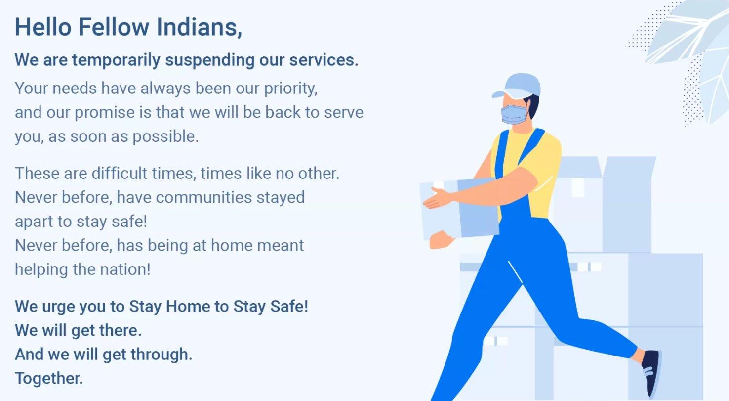 NEW DELHI: Etailer Flipkart on Wednesday said it has temporarily suspended its operations and services – including grocery items — as India enters a 21-day lockdown.
