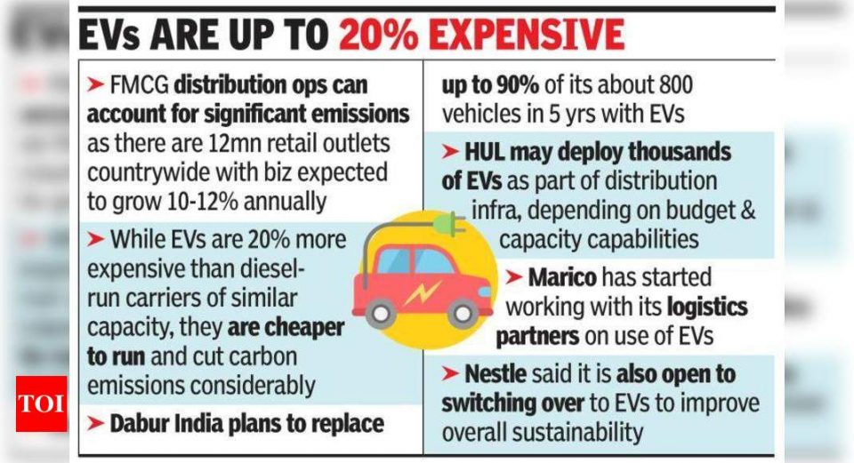 As last-mile distribution adds to greenhouse gas emissions, some fast-moving consumer goods (FMCG) companies are chalking out plans to replace their existing fleets with electric vehicles (EVs).