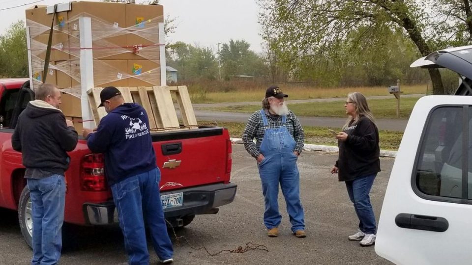 The American Legion Riders and members of Twin Oaks Baptist Church in Wagoner teamed up to distribute an abundance of food items to residents living in the Fort Gibson Lake area on Tuesday, Oct. 20.