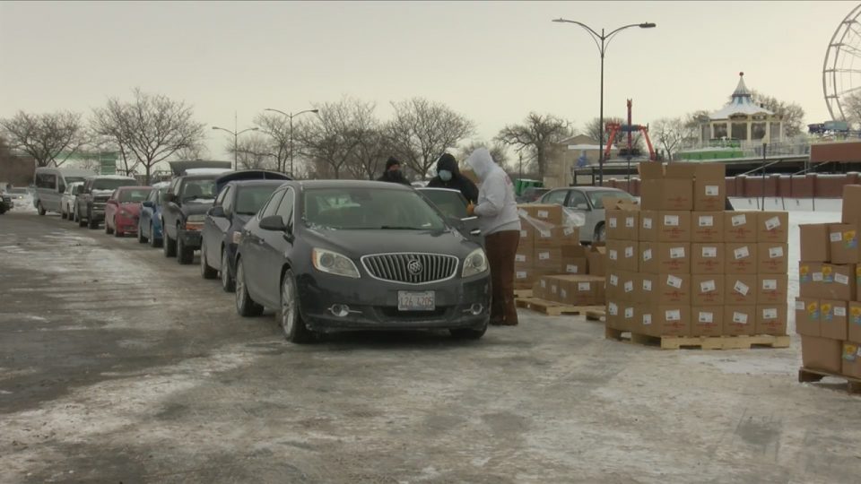 “I think this is a great thing to help people when they’re down and out. These people that are volunteering, I think, are wonderful,” said one woman who showed up to the site. “I’m picking up for a neighbor that had a stroke, and an elderly couple that doesn’t get out in the cold. People that need help. This is what I can do for them. I can’t help them financially, but I can come down here and wait in line for an hour to get them some food.”